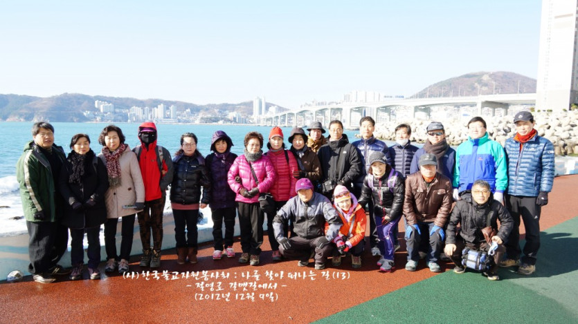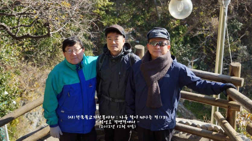 오주영님의 댓글 오주영쪽지보내기 메일보내기 자기소개 아이디로 검색 전체게시물쪽지보내기 메일보내기 자기소개 아이디로 검색 전체게시물 작성일 12-12-30 18:15 2012년 12월 9일 금년 마지막 행사로 영도에 있는 갈맷길을 산책하고, 한마음 선원을 찾아 혜원스님의 법문을 듣고 자갈치에서 송년회를 가졌습니다. 그간 봉사하신 회원 여러분에게 감사드리고, 아울러 새해에도 많은 도움을 주시기 바라며 가내에 부처님의 가피가 가득하길 기원합니다. 오주영 손모음 2012년 12월 9일 금년 마지막 행사로 영도에 있는 갈맷길을 산책하고, 한마음 선원을 찾아 혜원스님의 법문을 듣고 자갈치에서 송년회를 가졌습니다. 그간 봉사하신 회원 여러분에게 감사드리고, 아울러 새해에도 많은 도움을 주시기 바라며 가내에 부처님의 가피가 가득하길 기원합니다. 오주영 손모음