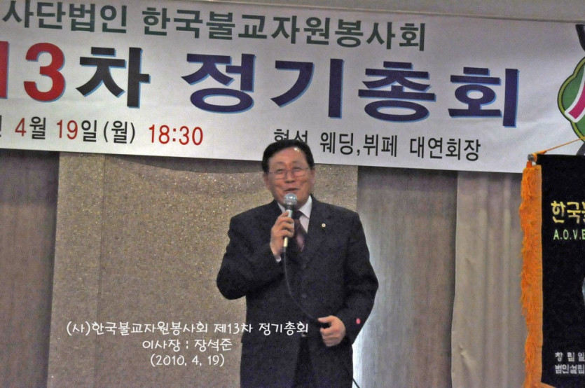 2010년 4월 19일 부산진역 옆에 있는 협성뷔페13층에서 13차 총회를 열었습니다. 이번에는 예산상의 낭비를 막기위하여 조촐하게 진행되었습니다. 그날 참석하신 모든 분들께 감사드리고, 특히 늘 보시해주시는 여러 단체에서 참석하시어 자리를 더욱 빛나게 하였습니다. 부처님의 가피가 늘 가까이 하시길...
