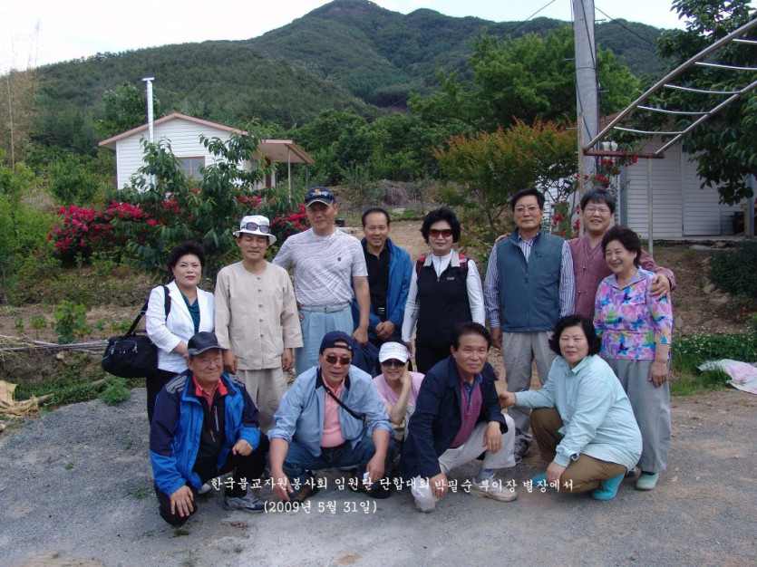 한국불교자원봉사회 임원단합대회를 밀양시 상동면에 있는 박필순부이장 별장에서 가졌습니다. 장미꽃이 만발한 가운데서 즐거운 식사를 했답니다. 갖가지 보약으로 구성된 야채와 현지에서 잡은 민물고기(꺽정이와 피래미)로 만든 어탕을 먹으니 힘이 절로 났습니다. 오는 길에 이영도시인도 만나고, 삼량진에 있는 만어사에 들러 예배도 올렸답니다.