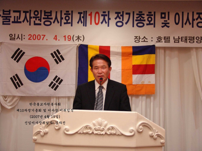 한국불교자원봉사회 제10차 정기총회 및 이사장 이취임식이 2007년 4월 19일 남태평양호텔에서 4부 대중들과 함께 간소하게 치렀습니다.