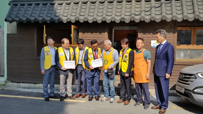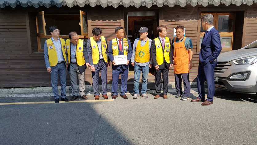 2018년 10월 17일 부산화랑라이온스클럽에서 상당한 후원금을 보시하면서 봉사활동하시는 모습입니다