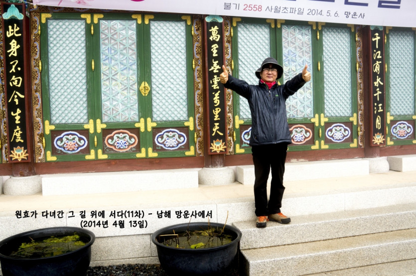 원효가 다녀간 그 길 위에 서다(11차) - 남해 망운사 페이지 정보 작성자 오주영쪽지보내기 메일보내기 자기소개 아이디로 검색 전체게시물쪽지보내기 메일보내기 자기소개 아이디로 검색 전체게시물 댓글 0건 조회 5,276회 작성일 14-04-21 20:37 목록 본문 페이스북 공유 트위터 공유 봄비가 내리는 날이었다. 남해 망운산 망운암에 도착했을 때는 안개가 가득했다. 그러나 성각스님이 우리를 반갑게 맞아주시는 바람에 모두들 즐거웠다. 그때의 모습을 올립니다. 댓글 0 댓글목록 등록된 댓글이 없습니다.