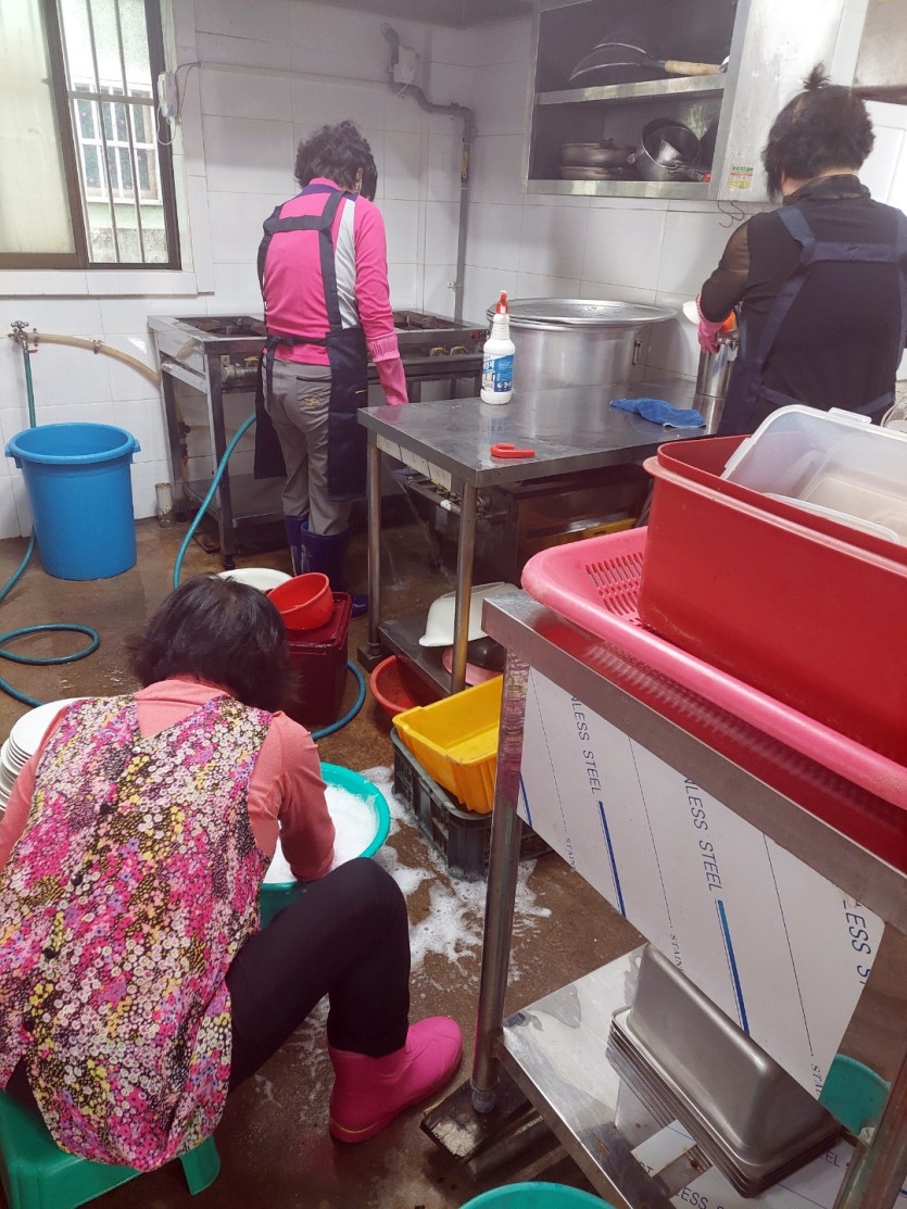 무료 급식소 재개를 앞두고 주방청소를 말끔하게 하였습니다.